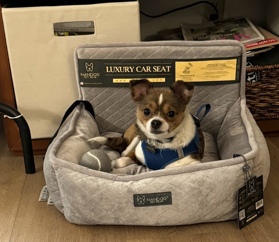 O Car Seat da Nandog Pet Gear é perfeito para você transportar seu cachorro em seu carro com o máximo de conforto e segurança. O revestimento interno em microfibra aveludada e o preenchimento de fibra extrasoft proporcionam o máximo de conforto. As alças externas conectadas ao cinto de segurança e o gancho interno conectado ao peitoral garantem total segurança.
